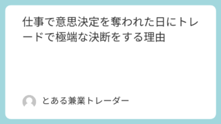 仕事から相場へ移るには、「判断の再起動時間」が必要です。切り替えなしで始めると、判断は混線しやすくなります。兼業トレーダー向けの現実的な整理。