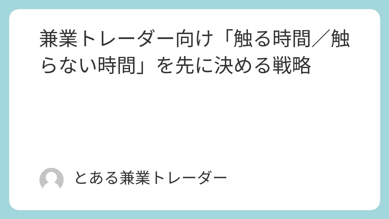 兼業トレーダーとして相場に向き合っていると、「いつ触るか」を深く考えないままトレードしてしまうことがあります。