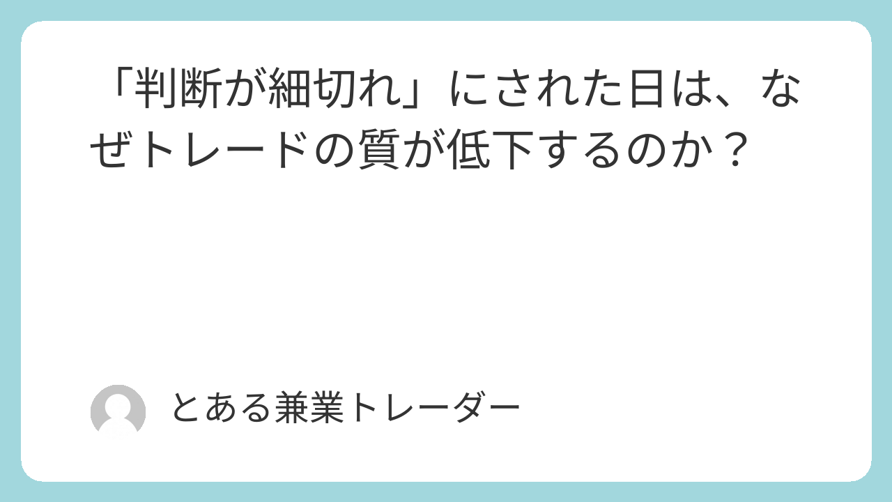兼業トレーダーの判断の荒れは、技術不足よりも、仕事によって作られた判断環境が原因になっていることがあります。