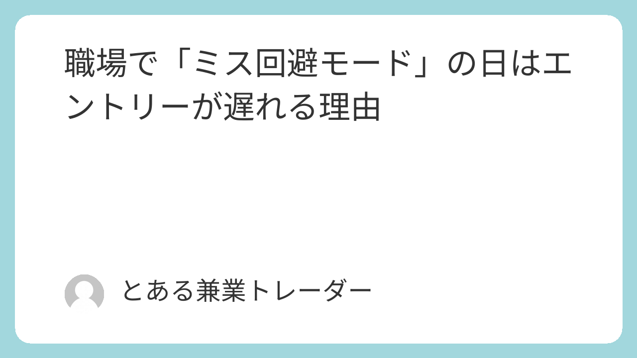職場で“ミスを恐れる”モードの日にエントリーが遅れるのは、トレーダーとしての力量の問題ではありません。