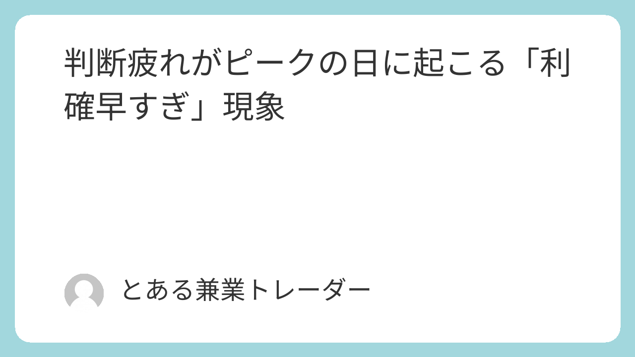 今回は、判断疲れがピークに達した日に起こりやすい「利確が早すぎる」現象について、仕事との関係を考察します。