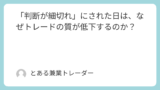 その結果、エントリーも決済も、判断を早く終わらせようとして、雑になりやすい。