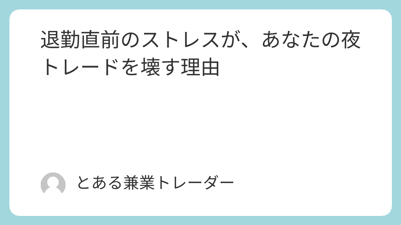 今回は、退勤直前に感じたストレスが、なぜ夜トレードを壊してしまうのかを整理します。
