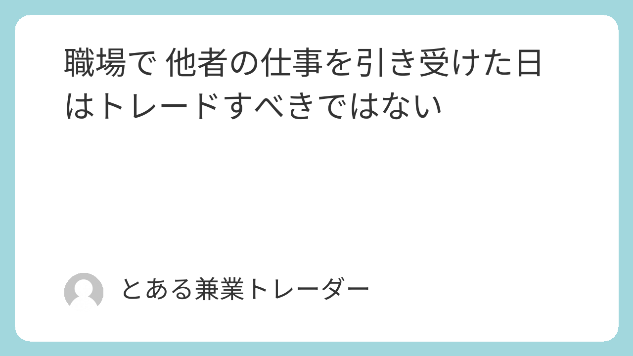今回は、職場で他人の仕事を引き受ける状況が続いた日は、なぜトレードすべきではないのか?