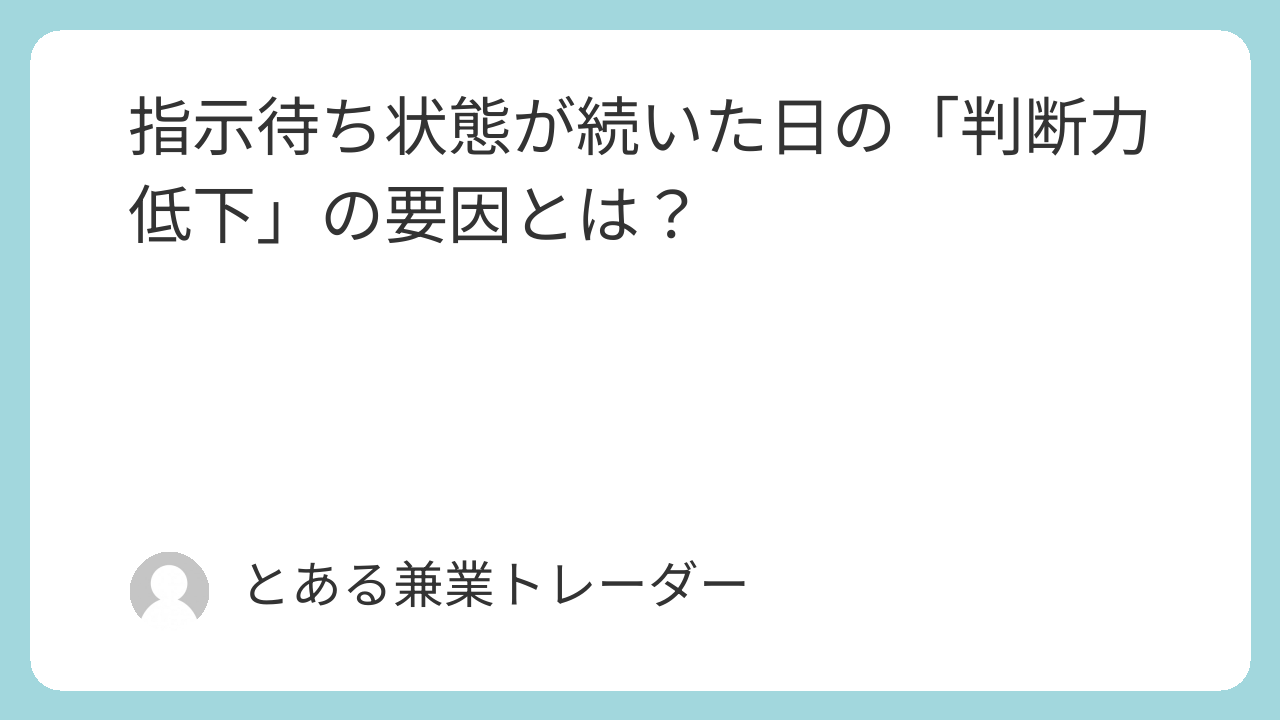 この経験以降、私は「指示待ち状態が長かった日」は、トレード前に一つだけ確認するようにしています。